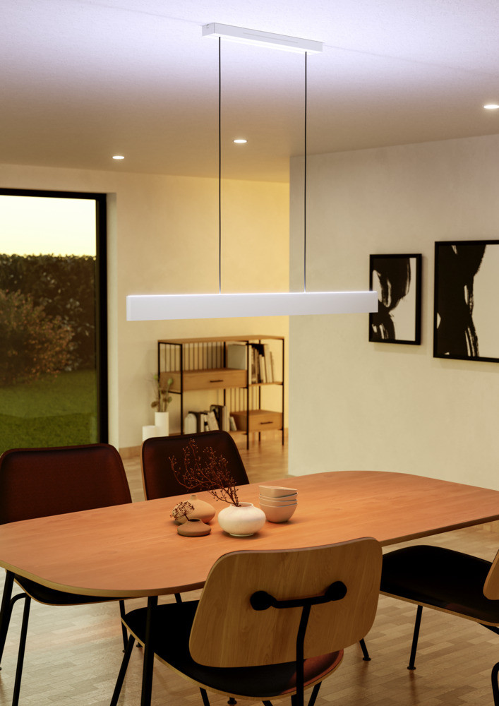 Az ANDREAS-Z függeszték az EGLO connect.z ZigBee okoslámpa széria tagja, melynek fényereje, színe és színhőmérséklete szabályozható, hogy a fényt igényeinek, hangulatának, bioritmusának megfelelően beállíthassa. A lámpa további különlegessége, hogy felfelé és lefelé is világít, s ezeket a LED modulokat akár külön is kapcsolhatja.